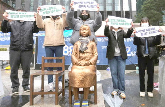 កេរដំណែលនៃការគ្រប់គ្រងអាណានិគមរបស់ជប៉ុនពីឆ្នាំ១៩១០ ដល់ឆ្នាំ ១៩៤៥ នៃឧបទ្វីបកូរ៉េ នៅតែប្រកាន់និន្នា ការនយោបាយសម្រាប់ភាគីទាំងសងខាង ជាមួយនឹងស្ត្រីដែលត្រូវជប៉ុនបង្ខំផ្លូវភេទដែលនៅរស់រានមានជីវិត ជាច្រើននៅតែទាមទារឱ្យមានការសុំទោស និងសំណងជាផ្លូវការពីទីក្រុងតូក្យូ។ជនរងគ្រោះទាំង១៦នាក់បានប្តឹងកាលពីឆ្នាំ ២០១៦ ១៥ម៉ឺនដុល្លារអាមេរិកក្នុងម្នាក់ៗប៉ុន្តែតុលាការក្រុងសេអ៊ូល កណ្តាលបានច្រានចោលសំណុំរឿងនេះនៅឆ្នាំ២០២១ ដោយលើកឡើងពីអភ័យឯកសិទ្ធិអធិបតេយ្យ ដែល ជាគោលលទ្ធិច្បាប់ដែលអនុញ្ញាតឱ្យរដ្ឋមួយត្រូវបានលើកលែងពីបណ្តឹងរដ្ឋប្បវេណីនៅក្នុងតុលាការបរទេស។ទោះជាយ៉ាងណាក៏ដោយ តុលាការជាន់ខ្ពស់ទីក្រុងសេអ៊ូល បានច្រានចោលការសម្រេចរបស់តុលាការជាន់ ទាប ដោយទទួលស្គាល់យុត្តាធិការរបស់តុលាការកូរ៉េខាងត្បូងលើរដ្ឋាភិបាលជប៉ុនជាចុងចោទ។សាលាឧទ្ធរណ៍បាននិយាយនៅក្នុងសេចក្តីថ្លែងការណ៍មួយថា វាសមហេតុផលក្នុងការពិចារណាថាមាន ច្បាប់ អន្តរជាតិរួមមួយដែលមិនទទួលស្គាល់អភ័យឯកសិទ្ធិរបស់រដ្ឋចំពោះអំពើខុសច្បាប់ដោយមិនគិតពីថាតើទង្វើនោះជាទង្វើអធិបតេយ្យឬយ៉ាងណា។