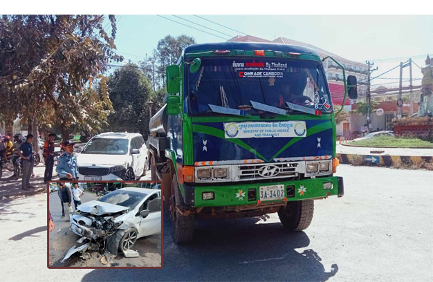 ខេត្តបាត់ដំបង ៖ រថយន្តដឹកទឹកធុនធំ របស់ក្រុមហ៊ុនធ្វើផ្លូវមួយ បានបើកវ៉ាជែងនិងបត់ខ្វះការប្រុងប្រយ័ត្ន ធ្វើឱ្យជ្រុលទៅកៀររថយន្ត ម៉ាក KIA Carnival ១គ្រឿង បណ្តាលឱ្យខូចខាតផ្នែកខាងមុខយ៉ាងដំណំ បន្ទាប់ មកភាគីទាំងសងខាងបានធ្វើការចរចាសម្របសម្រួលបញ្ចប់រឿង ដោយភាគីរថយន្តដឹកទឹកបានសងសំណង ទៅភាគីរថយន្ត KIA ចំនួន៩០០ដុល្លារ ដើម្បីបញ្ចប់រឿង។