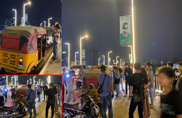 ភ្នំពេញ ៖ បុរសម្នាក់ ជាអ្នករត់ម៉ូតូកង់បី កំពុងដឹកប្រពន្ធធ្វើដំណើរតាមផ្លូវសុខៗ កើតមានទំនាស់ពាក្យសម្តី នឹងគ្នា គាប់ជួនធ្វើដំណើរឡើងមកដល់លើស្ពានជ្រោយចង្វា ក៏ឈប់ម៉ូតូកង់បី រួចស្ទុះលោតចូលទឹកប្រូង! លិចបាត់ខ្លួនឈឹង បន្សល់ទុកប្រពន្ធនៅទួញយំលើស្ពានតែម្នាក់ឯង។