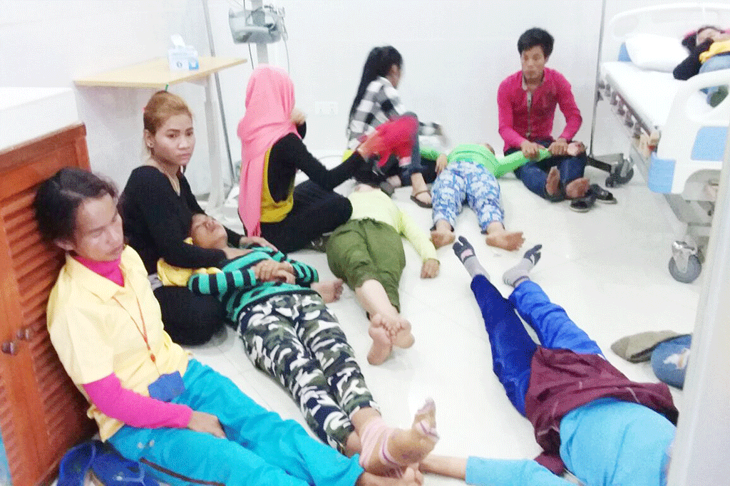ខេត្តព្រះសីហនុ ៖ កម្មការិនីរោងចក្រផលិតកាបូបមួយកន្លែង កំពុងបំពេញការងារសុខៗ ស្រាប់តែកើតមានអាការដួលសន្លប់ជាបន្ត– បន្ទាប់រហូតដល់ទៅ២៥នាក់ និងត្រូវបានគេ ដឹកបញ្ជូនទៅកាន់មន្ទីរពេទ្យដើម្បីព្យាបាល។ តាមការអះអាងរបស់ក្រុមគ្រូពេទ្យ មូលហេតុ ដែលនាំឱ្យមានការដួលសន្លប់ គឺបណ្តាលមកពី ខ្វះជាតិស្ករ តែក្រុមកម្មការិនីរងគ្រោះ បាន អះអាងថា មុនពេលដួលសន្លប់ ពួកនាងធុំក្លិនស្អុយដូចត្រីងាប់។
