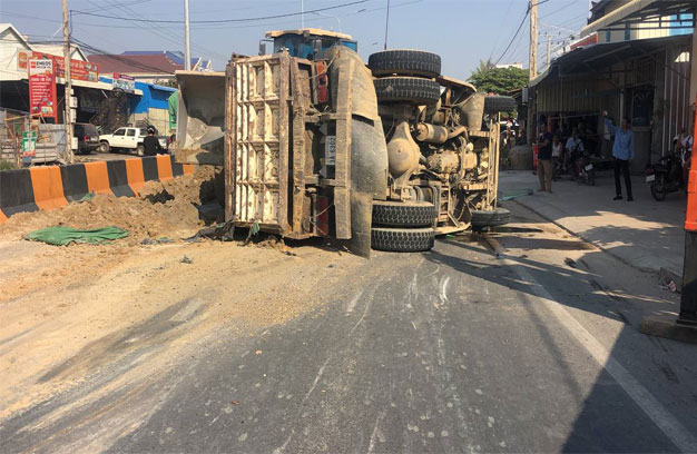 ភ្នំពេញ ៖ រថយន្តបែនដឹកដីមួយគ្រឿង បានបើកគេចពីរថយន្ត ១គ្រឿងទៀត ធ្វើឱ្យក្រឡាប់ផ្ងារជើង ចាក់ដីពេញផ្លូវ តែសំណាងល្អ មិនបណ្តាលឱ្យមានអ្នកណារងរបួសនោះទេ។