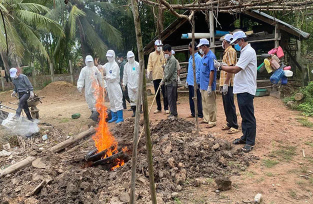 ក្រុមឆ្លើយតបបន្ទាន់របស់ក្រសួងសុខាភិបាលថ្នាក់ជាតិ និងថ្នាក់ក្រោមជាតិ បាននិងកំពុងសហការជាមួយក្រុមការងារនៃក្រសួងកសិកម្ម រុក្ខាប្រមាញ់ និងនេសាទ និងក្រសួងបរិស្ថាន អាជ្ញាធរមូលដ្ឋានគ្រប់លំដាប់ថ្នាក់ ធ្វើការអង្កេតស្រាវជ្រាវយ៉ាងសកម្មលើការកើតឡើងនូវជំងឺ ផ្តាសាយបក្សី និងធ្វើការឆ្លើយតបទៅតាមវិធីសាស្ត្រនិងពិធីសារបច្ចេកទេស បន្តការស្វែងរកប្រភពចម្លង ទាំងលើសត្វ និងមនុស្ស និងបន្តស្វែងរកករណីសង្ស័យ និងអ្នកប៉ះពាល់ ដើម្បីទប់ស្កាត់ការឆ្លងបន្តទៅអ្នកដទៃទៀតក្នុងសហគមន៍ ព្រមទាំងចែកជូនឱសថតាមីហ្វ្លូ (Tamiflu) ដល់អ្នកប៉ះពាល់ជិតស្និទ្ធ និងធ្វើយុទ្ធនាការអប់រំសុខភាពប្រជាពលរដ្ឋនៅក្នុងភូមិដែលកើតហេតុខាងលើ។