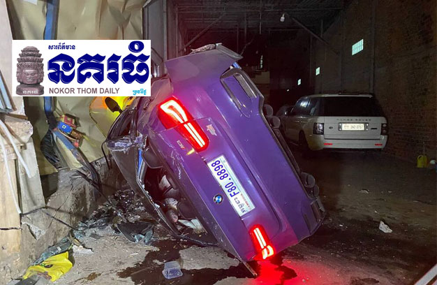 ភ្នំពេញ ៖ បុរសម្នាក់ បានបើករថយន្តទំនើប១គ្រឿង ក្នុងល្បឿនលឿន រួចជ្រូលបុករះរបង និងផ្ទះប្រជាពលរដ្ឋ បណ្តាលឱ្យរថយន្តធ្លុះចូលទៅក្នុងផ្ទះគេ រួចក្រឡាប់ផ្ងារជើងច្រងាង សំណាងល្អ មិនមានមនុស្សណាម្នាក់រងគ្រោះថ្នាក់ធ្ងន់នោះទេ។