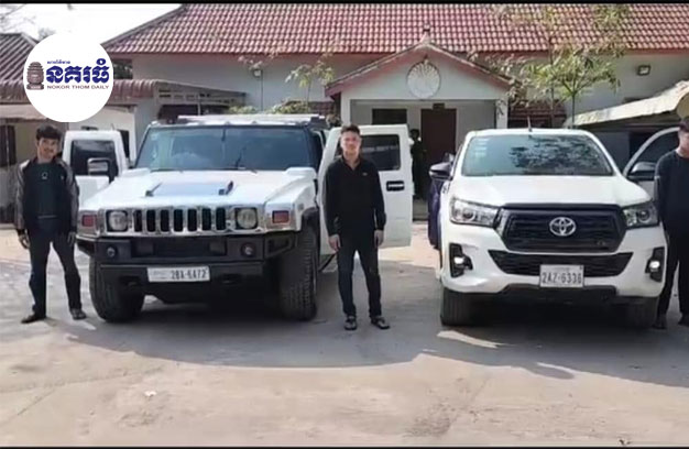 ដោយឡែក រថយន្តដែលដឹកប្រហិត ទាំង២គ្រឿង និងត្រូវសមត្ថកិច្ចឃាត់ទុក រួមមាន ទី១-ម៉ាក Hummer ពណ៌ស ពាក់ស្លាកលេខ ភ្នំពេញ 2BX-6472 និងទី២-ម៉ាក TOYOTA Hilux Rivo ពាក់ស្លាកលេខ ភ្នំពេញ 2AZ-6336។