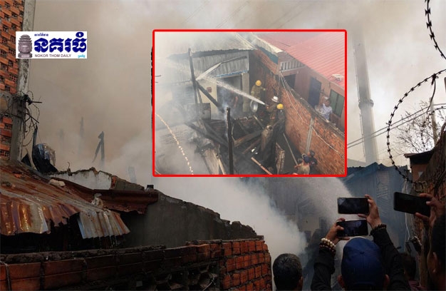 ភ្នំពេញ ៖ លំនៅឋានប្រជាពលរដ្ឋ សរុបចំនួន១០ខ្នង ត្រូវបានអគ្គិភ័យឆាបឆេះយ៉ាងសន្ធោសន្ធៅ និងបំផ្លាញអស់ទាំងស្រុង និងបន្តឆេះរាលដល់ផ្ទះ ៣ខ្នងទៀត (ខូចខាត៦០ភាគរយ) ដោយមូលហេតុផ្តើមចេញពីការបើកហ្គាស់ កម្តៅសម្លចាប់ឆាយ រួចក៏រាលឆេះផ្ទះយ៉ាងសន្ធោសន្ធៅ និងត្រូវបានសមត្ថកិច្ចជំនាញ បញ្ជូនរថយន្តពន្លត់អគ្គិភ័យ ចុះជួយអន្តរាគមន៍ភ្លាមៗ ដោយប្រើប្រាស់ទឹកបាញ់ពន្លត់ អស់ចំនួន ២៥រថយន្ត ទើបអាចគ្រប់ គ្រងស្ថានការណ៍បានទាំងស្រុង តែហេតុការណ៍នេះ បានបណ្តាលឱ្យនាយការិយាល័យនគរបាលបង្ការ ពន្លត់អគ្គិភ័យ ដែលចូលរួមដឹកនាំប្រតិបត្តិការដោយផ្ទាល់ បានរងរបួសទៀតផង។