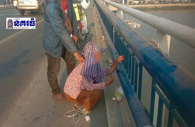 ភ្នំពេញ ៖ ស្ត្រីវ័យចំណាស់ម្នាក់ តូចចិត្តខ្លួនកាន់តែចាស់ កូនចៅមិនរវីរវល់មើលថែ បណ្តោយឱ្យលោកយាយដើរស្នាក់នៅតែជាមួយសាច់ញាតិ ទើបធ្វើឱ្យលោកយាយទ្រាំលែងបាន ក៏សម្រេចចិត្តឡើងលើស្ពានជ្រោយចង្វា ប៉ងលោតទឹកបញ្ចប់ជីវិត តែពេលឡើងទៅដល់ មិនដាច់ចិត្ត ក៏ឈរតោងបង្កាន់ដៃស្ពានយំ និងត្រូវបានអ្នកដំណើរប្រទះឃើញ រាយការណ៍ប្រាប់សមត្ថកិច្ច ឃាត់ទាន់។