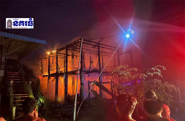 ខេត្តព្រៃវែង ៖ ផ្ទះ១ខ្នង រួមនិងទ្រព្យសម្បត្តិ ត្រូវបានអគ្គិភ័យឆាបឆេះបំផ្លាញអស់ទាំងស្រុង ខណៈដែលម្ចាស់មិននៅ កើតមានករណីឆ្លងចរន្តអគ្គិសនី បង្កជាអណ្តាតភ្លើងឆាបឆេះយ៉ាងសន្ធោសន្ធៅ ខូចខាតប្រមាណ ៣មម៉ឺនដុល្លារ។