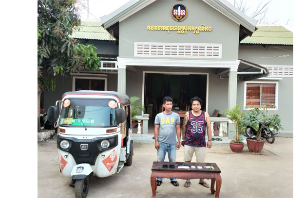 ខេត្តសៀមរាប ៖ ជនសង្ស័យ ចំនួន២នាក់ បានធ្វើសកម្មភាពជិះម៉ូតូកង់បី ១គ្រឿង ដឹកគ្នាដើរលក់ថ្នាំញៀន យ៉ាងបើកចំហ ទីបំផុតត្រូវកម្លាំងជំនាញអាវុធហត្ថស្រុកសូទ្រនិគម ចាប់វាយខ្នោះ នាំយកមកចាត់ការតាមច្បាប់។