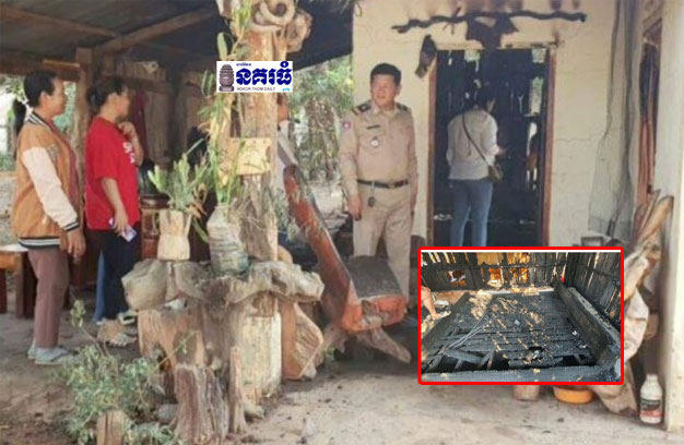 ខេត្តបាត់ដំបង ៖ ក្រុមគ្រួសារមួយ បានដុតធូបនៅលើហ៊ឹងក្នុងផ្ទះចោល រួចចាក់សោផ្ទះ ចេញទៅដេកនៅផ្ទះបងប្អូន ស្រាប់តែពាក់កណ្តាលអធ្រាត្រ កើតមានអគ្គិភ័យឆាបឆេះផ្ទះយ៉ាងសន្ធោសន្ធៅ បង្កឱ្យរងការខូចខាតផ្ទះអស់ទាំងស្រុង។