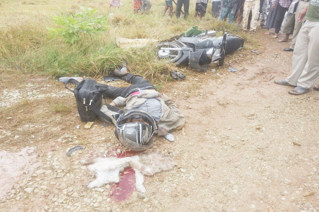 ខេត្តកណ្តាល ៖ បុរសជាបុគ្គលិកគ្រឹះស្ថានមីក្រូហិរញ្ញវត្ថុម្នាក់ ជិះម៉ូតូត្រឡប់មកពីកំដរ មិត្តភក្តិ នៅក្នុងពិធីរៀបការ និងប្រញាប់មកចូល ធ្វើការវិញផង ដល់ពាក់កណ្តាលផ្លូវ ស្រាប់តែ ជ្រុលចង្កូតទៅបុកបង្គោលចំណាំងផ្លាតក្បែរ ចិញ្ចើមផ្លូវ បណ្តាលឱ្យដួល ស្របពេលនោះ មានរថយន្តបើកមកដល់ជាន់ហ្វ្រាំងមិនជាប់ ក៏កិនពីលើជនរងគ្រោះ បែកក្បាលធ្លាយខួរ ស្លាប់យ៉ាងអា-ណោចអាធ័មនៅកន្លែងកើតហេតុ។