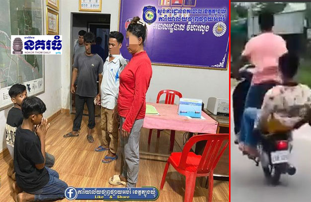 ខេត្តត្បូងឃ្មុំ ៖ ក្មេងទំនើង ចំនួន២នាក់ បានជិះម៉ូតូ ១គ្រឿង ដឹកគ្នាធ្វើសកម្មភាពបង្ហោះម៉ូតូយ៉ាងអនាធិបតេយ្យនៅលើដងផ្លូវ គាប់ជួនកម្លាំងសមត្ថកិច្ចល្បាតប្រទះឃើញ ក៏ប្រដេញចាប់ឃាត់យកមកអប់រំ រួចកោះហៅឪពុកម្តាយមកធានាយកត្រឡប់ទៅផ្ទះវិញ ចំណែកម៉ូតូ ត្រូវបានសមត្ថកិច្ចដកហូតទុក ១ខែ ជាការព្រមាន។