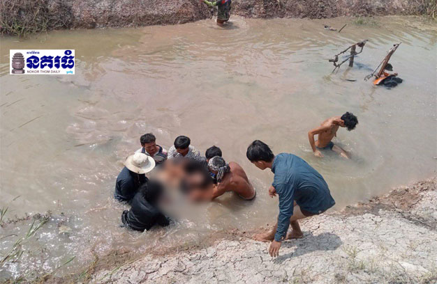ខេត្តស្វាយរៀង ៖ បុរសម្នាក់ បានបើកត្រាក់ទ័រដឹកស្រូវ តាមភ្លឺប្រឡាយ ស្រាប់តែរេចង្កូតធ្លាក់ ទឹកប្រឡាយ បណ្តាលឱ្យត្រាក់ទ័រសង្កត់អ្នកបើកបរ ស្លាប់នៅនឹងកន្លែង។