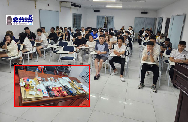 ភ្នំពេញ ៖ កម្លាំងជំនាញមន្ទីរប្រឆាំងគ្រឿងញៀន សហការជាមួយកម្លាំងសមត្ថកិច្ចជំនាញនៃស្នងការដ្ឋានរាជ ធានីភ្នំពេញ បានឆ្មក់ចូលបង្ក្រាបទីតាំងក្លឹបកម្សាន្តមួយកន្លែង ដែលលួចលាក់ចែកចាយនិងប្រើប្រាស់គ្រឿង ញៀន ដោយឃាត់ខ្លួនជនបរទេស និងខ្មែរ សរុប៧៨នាក់ ព្រមទាំងដកហូតបានថ្នាំញៀន ប្រមាណ៣គីឡូក្រាម។