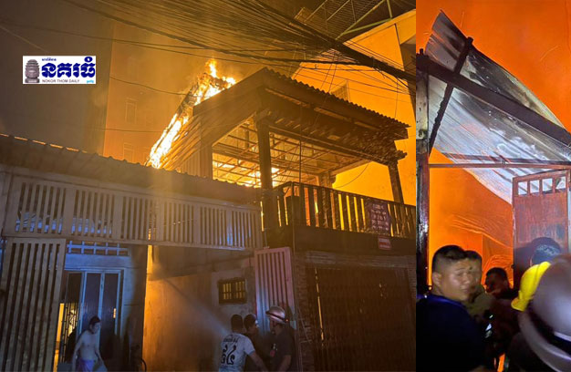 ភ្នំពេញ ៖ ផ្ទះ១ខ្នង ត្រូវបានអគ្គិភ័យឆាបឆេះទាំងកណ្តាលយប់ បង្កឱ្យមានការភ្ញាក់ផ្អើលដល់ប្រជាពលរដ្ឋនាំគ្នាជួយពន្លត់ភ្លាមៗដែរ តែទប់ទល់មិនឈ្នះ ក៏រាយការណ៍សុំអន្តរាគមន៍ពីសមត្ថកិច្ច បញ្ជូនរថយន្តពន្លត់អគ្គិភ័យ ចុះជួយបាញ់ទឹកពន្លត់ អស់១២រថយន្ត ទើបអាចគ្រប់ គ្រងស្ថានការណ៍បានទាំងស្រុង។