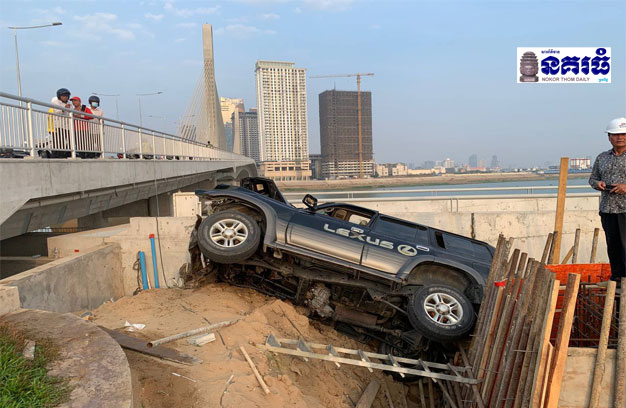 ភ្នំពេញ ៖ រថយន្ត Lexus LX-470 ១គ្រឿង បើកបរក្នុងល្បឿនយ៉ាងលឿន សំដៅឡើងស្ពានកោះនរា លុះអ្នកបើកបរងោក ១ភាំង ធ្វើឱ្យរេចង្កូតទៅបុកបង្គោលស្លាកសញ្ញា បាក់អស់១ដើម រួចហោះធ្លាក់ទៅបុកផ្ទប់ជញ្ជាំងក្រោមស្ពាន កៀបជាប់គល់ស្ពាន បណ្តាលឱ្យមនុស្សសរុបចំនួន៦នាក់ ដែលជិះក្នុងរថយន្ត រងរបួសធ្ងន់-ស្រាល និងត្រូវបានដឹកបញ្ជូនទៅសង្គ្រោះនៅឯមន្ទីរពេទ្យភ្លាមៗ។