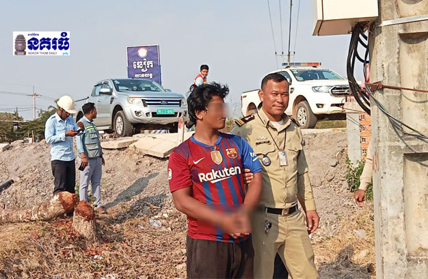 ខេត្តកំពត ៖ ជនសង្ស័យម្នាក់ ជាមុខសញ្ញាលួចកាត់ខ្សែភ្លើងតាមបង្គោលត្រង់ស្វ័រ យ៉ាងសកម្ម ដែលធ្លាប់ធ្វើ សកម្មភាពបានសម្រេចរាប់ភ្លេច នៅរាជធានីភ្នំពេញ លុះមួយរយៈក្រោយ ដោយលំបាកធ្វើសកម្មភាពពេក ក៏ចូលមកទឹកដីខេត្តកំពត ដើរលួចកាត់ខ្សែភ្លើង បានចំនួន ១១លើករួចមកហើយ ទីបំផុតអស់លក្ខណ៍ ត្រូវសមត្ថកិច្ចជំនាញចាប់ក្របួចជាប់ នាំយកមកចាត់ការតាមច្បាប់។