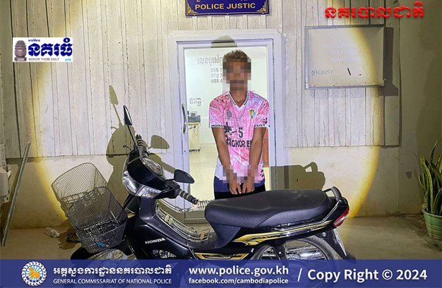 ករណីលួចម៉ូតូនេះ បានកើតឡើង កាលពីវេលាម៉ោង ៤និង៤០នាទីរសៀល ថ្ងៃទី២០ ខែមីនា ឆ្នាំ២០២៤ នៅចំ ណុចក្រុមទី០២ ភូមិព្រៃស្វាយ ឃុំរាំងកេសី ស្រុកសង្កែ។ រហូតមកដល់វេលាម៉ោង ៥និង៥០នាទីល្ងាចថ្ងៃដដែល ទើបសមត្ថកិច្ចស្រាវជ្រាវចាប់ឃាត់ខ្លួនជនសង្ស័យបាន។