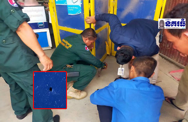 ជនរងគ្រោះបានបញ្ជាក់បន្ថែមថា កាលពីយប់កើតហេតុនោះ នៅម៉ោងជាង ១រំលងអធ្រាត្រ គាត់ហាក់បានបានឮសំឡេងដូចជាគាស់ជញ្ជាំង តែគាត់មិនចាប់អារម្មណ៍ទេ។ លុះព្រឹកឡើងពេលគាត់ចេញមកបើកទ្វារ ឃើញមានស្នាមគ្រាប់កាំភ្លើងបែបនេះតែម្តង។
