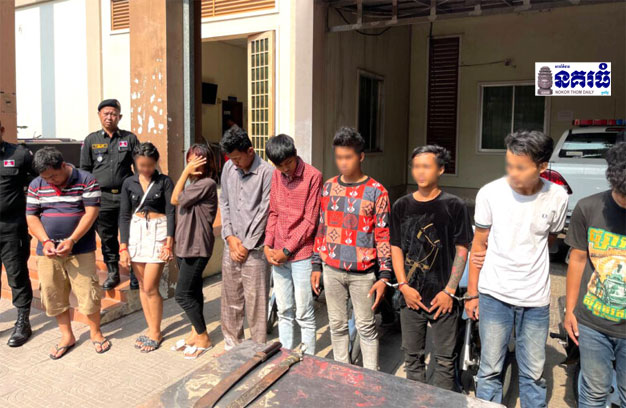 ចំណែកក្រុមជនសង្ស័យទាំង១០នាក់ ដែលត្រូវបានសមត្ថកិច្ចចាប់ឃាត់ខ្លួន រួមមាន ទី១-ឈ្មោះងួន សុផល ភេទប្រុស អាយុ១៩ឆ្នាំ។ ទី២-ឈ្មោះធឹន ចរិយា ភេប្រុស អាយុ១៧ឆ្នាំ។ ទី៣-ឈ្មោះជឹម សុវណ្ណលិ ភេទប្រុស អាយុ១៦ឆ្នាំ។ ទី៤-ឈ្មោះសួន សំណាង ភេទប្រុស អាយុ១៨ឆ្នាំ។ ទី៥-ឈ្មោះសុទ្ធ សក្កដា ភេទប្រុស អាយុ ១៦ឆ្នាំ។ ទី៦-ឈ្មោះ ណែម ផានីត ភេទប្រុស ១៩ឆ្នាំ។ ទី៧-ឈ្មោះឈឿម យីណាន់ ភេទប្រុស អាយុ១៩ឆ្នាំ។ ទី៨-ឈ្មោះសឿន រាម ភេទស្រី អាយុ១៨ឆ្នាំ។ ទី៩-ឈ្មោះគ្រីន សុខហេង ភេទស្រី អាយុ ១៨ឆ្នាំ និងទី១០-ឈ្មោះ សៀវ រ៉ូ ភេទប្រុស អាយុ៣៦ឆ្នាំ ស្នាក់នៅម្តុំទួលសង្កែ សង្កាត់ទួលសង្កែ ខណ្ឌឫស្សីកែវ មុខរបរជាងជួសជុលម៉ូតូ (ទទួលផលចោរកម្ម)។