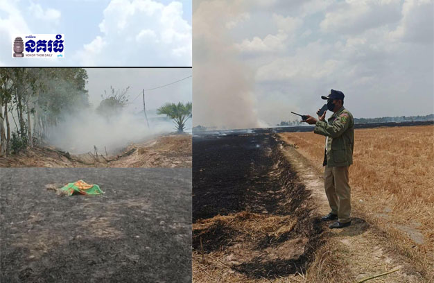 ខេត្តតាកែវ ៖ បុរសវ័យចំណាស់ម្នាក់ បានទៅដុតជញ្ជ្រាំងស្រូវ ក្នុងស្រែរបស់ខ្លួន លុះភ្លើងឆេះរាលខ្លាំង ពន្លត់មិនបាន បណ្តាលឱ្យឆេះរាលដល់ជញ្ជ្រាំងស្រូវ ប្រមាណជាង២០ហិកតារ និងថែមទាំងបណ្តាលឱ្យឆេះស្លាប់ទាំងខ្លួនឯងក្នុងភ្នក់ភ្លើងយ៉ាងអាណោចអាធ័ម។