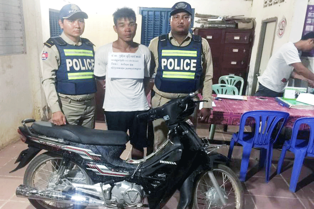មន្ត្រីនគរបាលដដែលបានបន្តទៀតថា កាល ពីវេលារសៀល ថ្ងៃទី៤ ខែកុម្ភៈ ឆ្នាំ២០១៧ ជនរងគ្រោះបានជិះម៉ូតូរបស់ខ្លួនដែល​ទើបនឹង ទិញបានថ្មីទៅមើលចម្ការឈូក ស្ថិតនៅក្នុង ភូមិតាជោរ ឃុំសារិកាកែវ ស្រុកល្វាឯម។ លុះ ពេលជនរងគ្រោះ​ជិះទៅដល់ទីនោះ ក៏បានចត ម៉ូតូនៅក្រោមដើមត្នោត ដោយចាក់សោយ៉ាង ត្រឹមត្រូវ មុនដឹងដើរទៅចម្ការឈូករបស់ខ្លួន ដែលមានចម្ងាយប្រហែលជា២០០ម៉ែត្រពី កន្លែងទុកម៉ូតូ។ ស្របពេលកំពុងតែដើរមើល ត្រពាំងឈូក ស្រាប់តែឃើញ​ជន​សង្ស័យ២ នាក់ ដើរជិតម៉ូតូរបស់គាត់ រួចហើយកាច់ក បានសម្រេច ក៏បញ្ឆោះម៉ូតូបម្រុងនឹងបើកដឹក គ្នាចេញទៅ។ ឃើញបែបនេះ ជនរងគ្រោះ បានរត់ដេញតាមបណ្តើរ និងស្រែកបណ្តើរ ធ្វើ ឱ្យផ្អើលឆោឡោដឹងដល់អ្នកភូមិ នាំគ្នាស្ទាក់ព័ទ្ធ ចាប់បានភ្លាមៗម្នាក់ និងរត់គេចខ្លួនបាត់ម្នាក់។