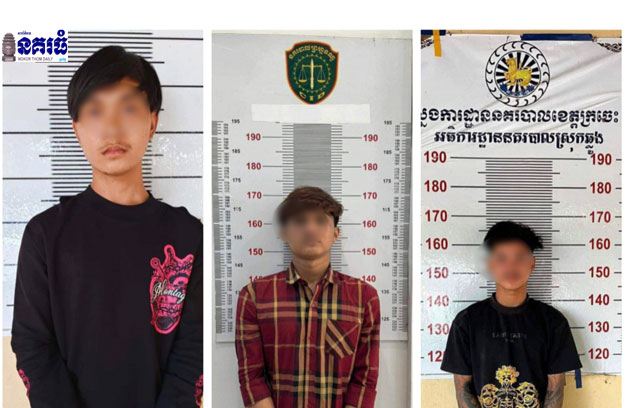ជនសង្ស័យទាំង៣នាក់ ដែលត្រូវសមត្ថកិច្ចចាប់ឃាត់ខ្លួន រួមមាន ទី១-ឈ្មោះស៊ុន ដាលីត ភេទប្រុស អាយុ១៨ឆ្នាំ មានលំនៅ ភូមិបុស្ស ឃុំដំរីផុង ស្រុកឆ្លូង ឃាត់ខ្លួនបានត្រង់ចំណុចភូមិដីថ្មី ឃុំព្រែសាម៉ាន់ ស្រុកឆ្លូង ខេត្តក្រចេះ។ ទី២-ឈ្មោះលី វុទ្ធី ភេទប្រុស អាយុ១៧ឆ្នាំ ឃាត់ខ្លួន បាននៅត្រង់ចំណុចភូមិបុស ឃុំដំរីផុង ស្រុកឆ្លូង និងទី៣-ឈ្មោះណាំ រតនា ភេទប្រុស អាយុ១៧ឆ្នាំ ឃាត់ខ្លួនបានត្រង់ចំណុចសង្កាត់ទួលស្វាយ ព្រៃទី១ ខណ្ឌបឹងកេងកង រាជធានីភ្នំពេញ។