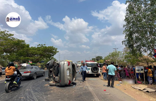ខេត្តសៀមរាប ៖ រថយន្តឡិចស៊ីស ១គ្រឿង បើកបរក្នុងល្បឿនលឿន និងព្យាយាមវ៉ាជែងរថយន្តក្រុងដឹកអ្នកដំណើរ ១គ្រឿង ទាំងស្ថានភាពគ្រោះថ្នាក់ ក៏ប៉ះជាមួយនឹងរថយន្តក្រុង បណ្តាលឱ្យរថយន្តឡិចស៊ីស ក្រឡាប់ផ្ងារជើង និងធ្វើឱ្យអ្នករួមដំណើរក្នុងរថយន្តឡិចស៊ីស សរុប១១នាក់ រងរបួសធ្ងន់-ស្រាល និងត្រូវបានដឹកបញ្ជូនទៅកាន់មន្ទីរពេទ្យ ដើម្បីសង្គ្រោះភ្លាមៗ។
