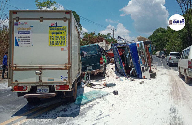 ឡានដឹកខ្សាច់រអិលថយក្រោយ បុ…ក…ឡាន៣គ្រឿង របួ…ស…៨នាក់