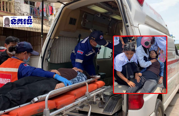 ភ្នំពេញ ៖ ស្ត្រីម្នាក់ ជាគ្រូបង្រៀន រងរបួសធ្ងន់ បាក់ដៃឆ្វេងសន្លប់ស្តូកស្តឹង ចំណែកសិស្សសាលាម្នាក់ បានរងរបួសស្រាល បន្ទាប់ពីជួបគ្រោះថ្នាក់ចរាចរណ៍ ត្រូវម៉ូតូធុនធំ ១គ្រឿង ជិះដោយក្មេងស្ទាវ បើកលឿន វ៉ាជែងជ្រុលទៅបុកម៉ូតូអ្នកគ្រូបង្រៀន ដែលកំពុងជិះបញ្ច្រាសទិសគ្នា នៅចំណុចមុខសាលារៀន។
