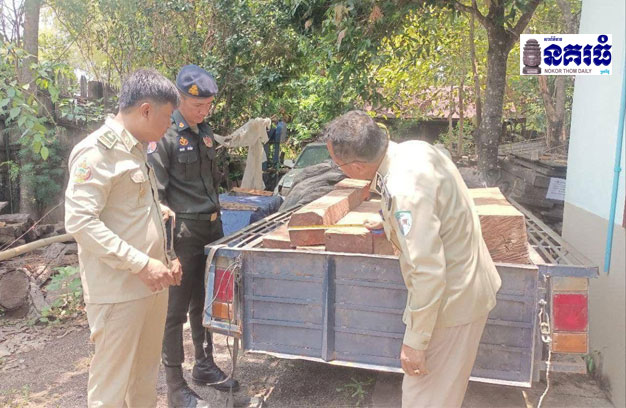 ខេត្តព្រះវិហារ ៖ កម្លាំងកងរាជអាវុធហត្ថស្រុកជាំក្សាន្ត បានជិះល្បាតក្នុងមូលដ្ឋាន ដើម្បីទប់ស្កាត់បទល្មើសព្រៃឈើ ដែលក្រុមឈ្មួញខិលខូចមួយចំនួនបាននាំគ្នាលួចដឹកជញ្ជូនខុសច្បាប់ ប្រទះឃើញក្រុមជនសង្ស័យកំពុងបើកម៉ូតូរ៉ឺម៉កដឹកឈើខុសច្បាប់ ១គ្រឿង ភ្លាមនោះ ជនសង្ស័យជាអ្នកបើកបរ គ្រាន់តែឃើញសមត្ថកិច្ចភ្លាម ក៏ឈប់រ៉ឺម៉ក រួចស្ទុះរត់ចោលម៉ូតូ ចូលព្រៃគេចខ្លួនបាត់។