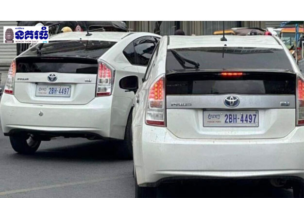 ភ្នំពេញ ៖ រូបភាពនៃរថយន្តតូយ៉ូតា ព្រូស ពណ៌ស ចំនួន២គ្រឿង ដែលមានស៊េរីឆ្នាំតែមួយ (២០១០) និងពាក់ ស្លាកលេខដូចគ្នាតែមួយនោះ ត្រូវបានបង្ហោះចែកចាយពេញក្នុងបណ្តាញសង្គម កាលពីថ្ងៃ១៣ ខែឧសភា ឆ្នាំ២០២៤ រហូតមានការលើកឡើងថា “ឡានភ្លោះ” ដែលករណីនេះសមត្ថកិច្ច និងមន្ត្រីជំនាញ កំពុងតាមស្វែងរកម្ចាស់រថយន្តទាំង២គ្រឿង ដើម្បីមកធ្វើការសាកសួរ ព្រោះក្នុងនោះមានរថយន្ត ១គ្រឿង ពាក់ស្លាកលេខក្លែងក្លាយ។