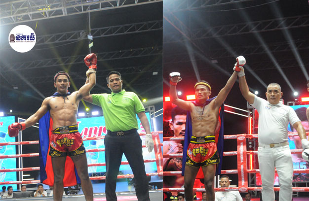 -គូមិត្តភាពអន្ដរជាតិទី៦៖ កីឡាករបង្គោលក្រហមទូច ដេវីត អាយុ២២ឆ្នាំមកពីក្លិបសុភាពគុនខ្មែរ សមគមកីឡាកងយោធពលខេរភូមិន្ទ ធ្លាប់ប្រកួត៥៩ដង ,ឈ្នះ៥១ដង, ចាញ់៧ដង ស្មើ១ដង និងធ្លាប់ផ្ដួលគូប្រកួតឲ្យសម្លប់ចំនួន១២ដង ប្រភេទទម្ងន់៦០គ.ក្រ  បានផ្ដួលនៅត្រឹមទឹកទី២ លើកីឡាករបង្គោលខៀវផេត ណៈរីន (PECH NAKRIN) មកពីថៃ អាយុ២៩ឆ្នាំ  ធ្លាប់ប្រកួត១៤០ដង,ឈ្នះ៩៩ដង ,ចាញ់៣៤ដង ,ស្មើ៣ដង  និងធ្លាប់ផ្ដួលគូប្រកួតឲ្យសម្លប់ចំនួន១១ដង ។