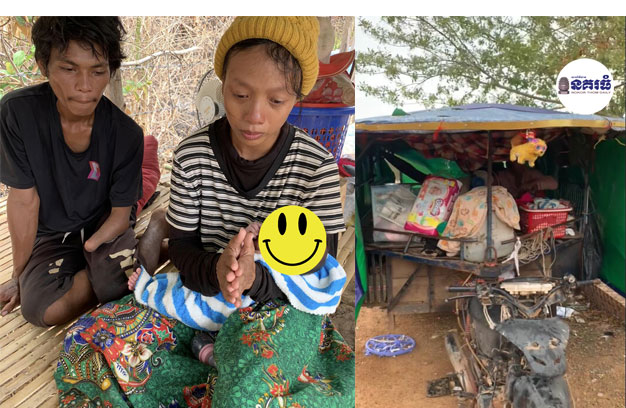 ភ្នំពេញ ៖ ប្តីប្រពន្ធ ២នាក់ រស់នៅក្នុងជីវភាពក្រីក្រតោកយ៉ាងកម្សត់ខ្លាំងណាស់ ខណៈដែលប្តីជាមនុស្សពិការ (ពិការដៃ) ចំណែកប្រពន្ធ សរសៃខ្ចី ទើបនឹងសម្រាលកូនបានកន្លះខែ គ្មានសូម្បីតែផ្ទះសម្បែងជ្រកនៅ បានយករ៉ឺម៉កធ្វើជាផ្ទះ ចំណែកជីវភាពខ្វះខាតព្រឹក-ល្ងាច ហូបចុក មិនគ្រប់ សូម្បីតែសម្លៀកបំពាក់កូនតូចដែលទើបនឹងកើត ក៏គ្មានផង។