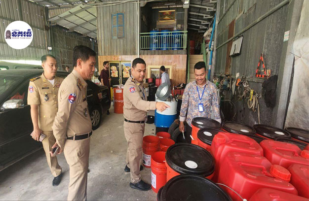ខេត្តកណ្តាល ៖ កម្លាំងសមត្ថកិច្ចជំនាញ នៃនាយកដ្ឋាននគរបាលប្រឆាំងបទល្មើសសេដ្ឋកិច្ច រួមជាមួយអាជ្ញាធរមូលដ្ឋាន ក្រោមការដឹកនាំសម្របសម្រួលនីតិវិធីពីលោកលី ភារ៉ា ព្រះរាជអាជ្ញារង នៃអយ្យការអមសាលាដំបូងខេត្តកណ្តាល បានចុះបង្ក្រាបទីតាំងវេចខ្ចប់កែច្នៃ ចែកចាយ ប្រេងម៉ាស៊ីនក្លែងក្លាយមួយកន្លែង។