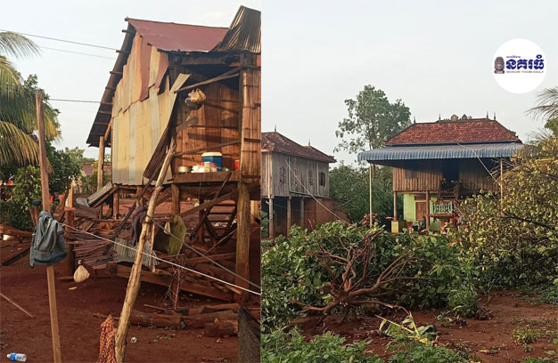 ភ្លៀងខ្យល់កន្ត្រាក់ ប៉ើងដំបូលផ្ទះ៣១ខ្នង បាក់ដើមកៅស៊ូ ជាង១ម៉ឺនដើម