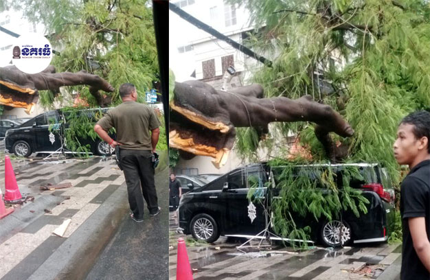 ភ្លៀង១មេ បាក់ដើមក្ងោក សង្កត់ឡានទំនើប