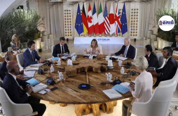 ប្រទេសអ៊ីតាលី ៖ មេដឹកនាំ G7 បានអនុម័តសេចក្តីព្រាងកិច្ចព្រមព្រៀងផ្តល់ប្រាក់កម្ចី ចំនួន ៥០ពាន់លានដុល្លារដល់អ៊ុយក្រែន ការប្រើប្រាស់ប្រាក់ចំណូលការប្រាក់ពីទ្រព្យសម្បត្តិរបស់រុស្ស៊ី។