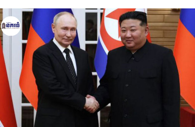 កូរ៉េខាងជើង ៖ ប្រធានាធិបតីរុស្ស៊ី លោក វ្ល៉ាឌីមៀរ ពូទីន បានអរគុណមេដឹកនាំកូរ៉េខាងជើង លោក គីម ជុងអ៊ុន ដែលគាំទ្ររុស្ស៊ី ក្នុងសង្គ្រាមរបស់ខ្លួននៅអ៊ុយក្រែន ក្នុងឱកាសបំពេញទស្សនកិច្ចនៅទីក្រុងព្យុងយ៉ាង រដ្ឋធានីនៃប្រទេសកូរ៉េខាងជើង ជាលើកដំបូង ក្នុងរយៈពេល២៤ឆ្នាំ មុនពេលប្រមុខដឹកនាំរុស្ស៊ី រូបនេះ នឹងទៅបំពេញទស្សនកិច្ចនៅវៀតណាម ជាប្រទេសបន្ទាប់។