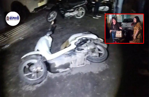 តាមប្រភពសមត្ថកិច្ច បានឱ្យដឹងថា ម៉ូតូដែលជនសង្ស័យរត់ចោល ម៉ាកហុងដា ស្កុបពី ពណ៌ស ពាក់ស្លាកលេខ ភ្នំពេញ 1IN-1719។
