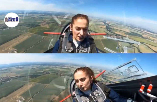 យន្តហោះធុនតូច កំពុងហោះហើរ ដំបូលកញ្ចក់របើកបែកខ្ទេច