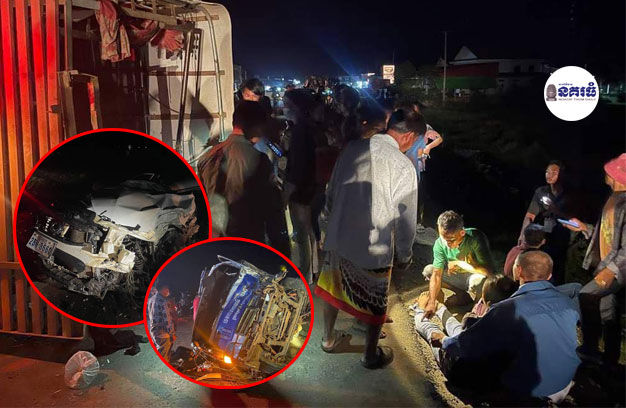 ខេត្តកំពង់ស្ពឺ ៖ រថយន្តដឹកកម្មករ ១គ្រឿង ដឹកកម្មករចេញពីរោងចក្រ បានជ្រុលទៅបុកជាមួយរថយន្ត ១គ្រឿង ទៀត យ៉ាងពេញទំហឹង បណ្តាលឱ្យក្រឡាប់ ចាក់កម្មករ-កម្មការិនីរោងចក្រ ២៦ ចោលលើផ្លូវ រងបួសធ្ងន់-ស្រាលរដូករណែល និងត្រូវបានដឹកបញ្ជូនទៅសង្គ្រោះនៅមន្ទីរពេទ្យភ្លាមៗ។