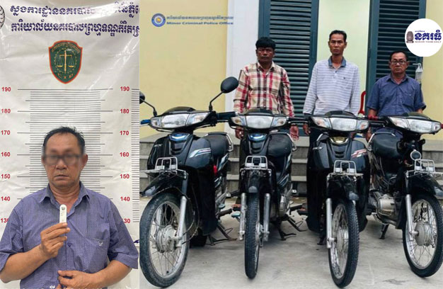 លោកវរសេនីយ៍ឯក ម៉ម សាវន នាយការិយាល័យនគរបាលព្រហ្មទណ្ឌកម្រិតស្រាល រាជធានីភ្នំពេញ បានឱ្យដឹងថា ដោយទទួលបាន បញ្ជាដឹកនាំដ៏ខ្ពង់ខ្ពស់ពីលោកឧត្តមសេនីយ៍ឯក ជួន ណារិន្ទ អគ្គស្នងការរង និងជាស្នងការនគរបាលរាជធានីភ្នំពេញ និងលោកឧត្តមសេនីយ៍ត្រី ប៊ុន សត្យា ស្នងការរងទទួលផែនការងារនគរ បាលព្រហ្មទណ្ឌ និងលោកឧត្តមសេនីយ៍ទោ លី ប៊ុនអេង ស្នងការរងទទួលការិយាល័យព្រហ្មទណ្ឌកម្រិតស្រាល កាលពីថ្ងៃទី២៤ និងថ្ងៃទី២៥ ខែកក្កដា ឆ្នាំ២០២៤ លោកបានដឹកនាំកម្លាំងផ្ទាល់ សហការជាមួយប៉ុស្តិ៍នគរបាលរដ្ឋបាលបឹងកក់២ ខណ្ឌទួលគោក នគរបាលស្រុកត្រាំកក់ និងនគរបាលស្រុកទ្រាំង ខេត្តតាកែវ ស្រាវជាវ និងឃាត់ខ្លួនជនសង្ស័យជាចោរលួចកាច់ម៉ូតូ បន្តបន្ទាប់ ចំនួន៣នាក់ ព្រមទាំងដកហូតម៉ូតូ ចំនួន៤គ្រឿង ពាក់ពន្ធអំពើលួចយកម៉ូតូរបស់ប្រជាពលរដ្ឋ ចំនួន៣ករណី។