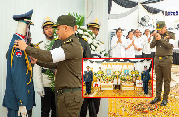 ភ្នំពេញ ៖ នៅថ្ងៃសុក្រ ៧កើត ខែអាសាឍ ឆ្នាំរោង ឆស័ក ព.ស. ២៥៦៨ ត្រូវនឹងថ្ងៃទី០២ ខែសីហា ឆ្នាំ២០២៤ លោក ទៀ សីហា ឧបនាយករដ្ឋមន្ត្រី រដ្ឋមន្ត្រីក្រសួងការពារជាតិ បានអញ្ជើញបំពាក់ឋានន្តរស័ក្តិជាកិច្ចបច្ឆា មរណៈ និងគោរពវិញ្ញាណក្ខន្ធសពអាកាសយានិករងគ្រោះ ២រូប នៃបញ្ជាការដ្ឋានកងទ័ពជើងអាកាស ដែលបានពលីដោយឧបទ្ទវហេតុធ្លាក់ឧទ្ធម្ភាគចក្រ ក្នុងអំឡុង ពេលបំពេញបេសកកម្មហោះហើរហ្វឹកហ្វឺន កាលពីថ្ងៃទី១២ ខែកក្កដា ឆ្នាំ២០២៤។ ពិធីបុណ្យសពអាកាសយានិក ទាំង២រូប ត្រូវបានរៀបចំធ្វើរួមគ្នា នៅមូលដ្ឋានកងទ័ពជើងអាកាស ពោធិ៍ចិនតុង សង្កាត់កាកាបទី១ ខណ្ឌពោធិ៍សែនជ័យ។