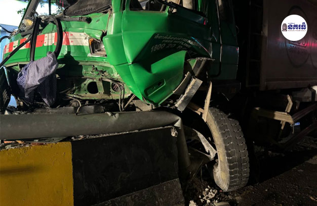 ភ្នំពេញ ៖ រថយន្តដឹកសំរាម ក្រុមហ៊ុនឯកជន ១គ្រឿង បានបើកបុកក្បាលនាគពុះចែកទ្រូងផ្លូវពេញទំហឹង បណ្តា លឱ្យបាក់អស់ ១កង់ និងធ្វើឱ្យទ្រេតបង្គោលភ្លើង ១ដើម ស្ទើរដល់ដី ដោយសារតៃកុងរថយន្ត ងងុយដេក ងោក១ភាំង ទើបបង្កឱ្យមានគ្រោះថ្នាក់បែបនេះ តែសំណាងល្អ មិនបង្កឱ្យមនុស្សណាម្នាក់រងគ្រោះថ្នាក់ឡ៉ើយ។