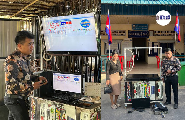 ជនសង្ស័យទាំង២នាក់ ដែលត្រូវសមត្ថកិច្ចចាប់ឃាត់ខ្លួន ទី១-ឈ្មោះហួន ឌីម៉ូវ ភេទប្រុស អាយុ៣៤ឆ្នាំ ជាមន្ត្រីកងអាវុធហត្ថរាជធានីភ្នំពេញ ស្នាក់នៅភូមិកន្ទោកជើង សង្កាត់កន្ទោក ខណ្ឌកំបូល និងទី២-ឈ្មោះម៉ម សោភា ភេទស្រី អាយុ២៩ឆ្នាំ មុខរបរលក់ដូរ ស្នាក់នៅភូមិកន្ទោកជើង សង្កាត់កន្ទោក ខណ្ឌកំបូល។ ចំពោះវត្ថុតាងចាប់យក រួមមាន កុំព្យូទ័រ ចំនួន១គ្រឿង ដុំ WiFi ចំនួន១ ម៉ាស៊ីន ឆ្នោតឡូតូចំនួនមួយ និងម៉ូនីទ័រតូចធំ។