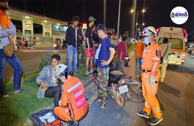 ភ្នំពេញ ៖ បុរសជាសន្តិសុខ វ័យចំណាស់ម្នាក់ កំពុងបណ្តើរកង់ឆ្លងផ្លូវ ស្រាប់តែត្រូវម៉ូតូ ១គ្រឿង ជិះក្នុងល្បឿនយ៉ាងលឿន បានជ្រុលមកបុកពេញទំហឹង បណ្តាលឱ្យបុរសចំណាស់រងរបួសធ្ងន់ បាក់ជើងស្តាំ ចំណែកអ្នកបើកម៉ូតូ រងរបួសស្រាល។