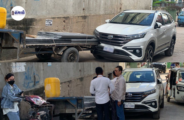 តាមប្រភពព័ត៌មានពីកន្លែងកើតហេតុ បានឱ្យដឹងថា នៅមុនពេលកើតហេតុ គេឃើញម៉ូតូសណ្តោងរ៉ឺម៉កដឹកថ្មម៉ាប ១គ្រៀង បើកបរដោយបុរសម្នាក់ ធ្វើដំណើរតាមបណ្តោយផ្លូវបេតុងតាផុន ទិសដៅពីលិច មកកើត បានបើកឡើងចំណោត តែឡើងមិនរួច ក៏រអិលថយក្រោយបុកកៀបជាប់នឹងរថយន្តទំនើប១គ្រឿង ម៉ាក TOYOTA RUSH ពណ៌ស ពាក់ស្លាកលេខ ភ្នំពេញ 2AX-1551 បើកបរដោយបុរម្នាក់ ធ្វើដំណើរស្របគ្នា បណ្តាលឱ្យខូចខាតផ្នែកខាងមុខយ៉ាងដំណំ សំណាងល្អមិនបង្កឱ្យមានអ្នករងរបួស។ ក្រោយកើតហេតុ សមត្ថកិច្ចមូលដ្ឋាន សហការជាមួយជំនាញចរាចរណ៍ខណ្ឌ បានចុះធ្វើការវាស់វែង និងយករ៉ឺម៉កនិងរថយន្ត ទៅរក្សាទុកនៅការិយា ល័យចរាចរណ៍ខណ្ឌមានជ័យ រង់ចាំធ្វើការដោះស្រាយគ្នានៅពេលក្រោយ៕