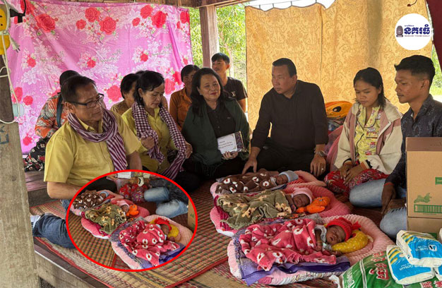 ខេត្តបាត់ដំបង ៖ ប្តីប្រពន្ធ ២នាក់ ជាបុគ្គលិភោជនីយដ្ឋានមួយកន្លែង ដោយប្តីជាកូនកាំបិតចុងភៅ ចំណែកស្ត្រីជាប្រពន្ធជាអ្នករត់តុ បានរួមរស់បង្កើតបានកូនភ្លោះដល់ទៅ៣នាក់ ដោយសុវត្ថិភាព និងទទួលបានអំណោយឧបត្ថម្ភមួយួចំនួនធំ ពីសម្តេចហ៊ុន សែន ប្រធានព្រឹទ្ធសភា និងសម្តេចកិត្តិព្រឹទ្ធ បណ្ឌិត ប៊ុន រ៉ានី ហ៊ុនសែន ប្រ ធានកាកបាទក្រហមកម្ពុជា។