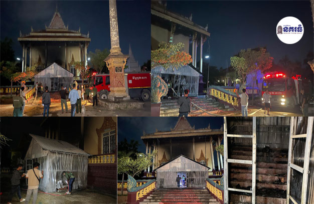 ប្រភពដដែល បន្តថា លុះដល់យប់ថ្ងៃកើតហេតុ ទៀននៅតែបន្តដុតទុកចោលដូចសព្វដង ហើយព្រះសង្ឃដែលគង់នៅក្នុងវត្ត ក៏បាននិមន្តចូលទៅសិងអស់។ លុះដល់ពេលកើតហេតុ ដោយធុំក្លិនឈ្ងៀមផ្សែងភ្លើងខ្លាំងខុសពីធម្មតា ទើបព្រះសង្ឃដែលគង់នៅក្នុងកុដិជិត នោះ និមន្តចេញមកមើល ស្រាប់តែឃើញមានភ្លើងកំពុងឆាបឆេះចេញពីក្នុងរោងដុតទៀន ជាប់នឹងព្រះវិហារ ទើបនាំគ្នាឆោឡោផ្អើលពុទ្ធបរិស័ទ និងព្រះសង្ឃ នាំគ្នាយកទឹក បំពង់ពន្លត់អគ្គិភ័យមកបាញ់ពន្លត់ តែមិនអាចទប់ស្កាត់បាន ក៏នាំគ្នារាយការណ៍ជូនកម្លាំងសមត្ថកិច្ច សុំជំនួយរថយន្តពន្លត់អគ្គិភ័យចេញអន្តរាគមន៍។