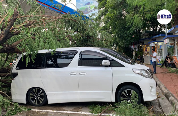 ភ្នំពេញ ៖ ដើមឈើមួយដើម ខណៈដែលមានភ្លៀងលាយខ្យល់កន្ត្រាក់ បានបាក់រលំរសង្កត់លើរថយន្តទំនើប ចំនួន៣គ្រឿង កំពុងឈប់ចត បណ្តាលឱ្យរងខូចខាតយ៉ាងដំណំ។